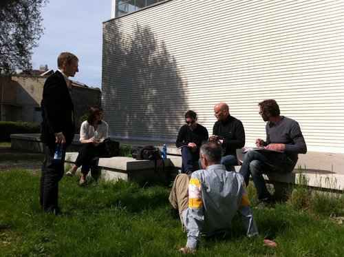 31 | Meeting in Venice¯Commissioner Arno Ritter anch architect Wolfgang Tschapeller met the Biennale-team on 30th and 31st of March 2012 in the Giardini della Biennale in Venice to taik about the exhibition build-up. |